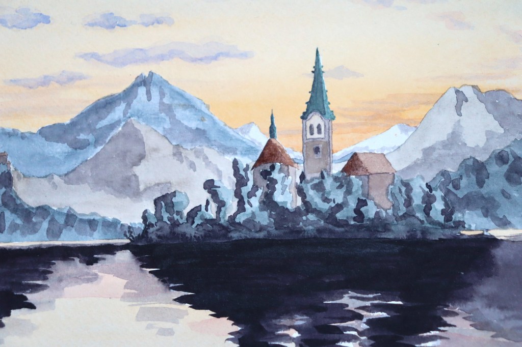 Aquarelles Mont Saint-Michel (France) 24×32, Aquarelle extra-fine sur papier à grain fin, fixatif appliqué, 50e Bled (Slovénie) 24×32, Aquarelle extra-fine sur papier à grain fin, fixatif appliqué, 50e Ecluse Saint-Pierre (Toulouse, France) 24×32, Aquarelle extra-fine sur papier à grain fin, fixatif appliqué, 50e Chaussée du Bazacle (Toulouse, France) 24×32, Aquarelle extra-fine sur papier à grain fin, fixatif appliqué, 50e Place Saint-Etienne (Toulouse, France) 24×32, Aquarelle extra-fine sur papier à grain fin, fixatif appliqué, 50e